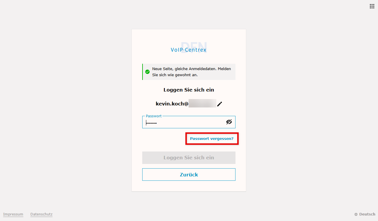 ⇒ Ihr Passwort wurde aktualisiert und Sie können sich erneut anmelden.