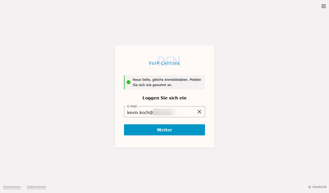3. Sollten Sie noch nicht in Ihrem DFN VoIP Centrex-Konto eingeloggt sein, erscheint ein Pop-Up-Fenster für die Anmeldung. Geben Sie hier Ihre Anmeldedaten ein.