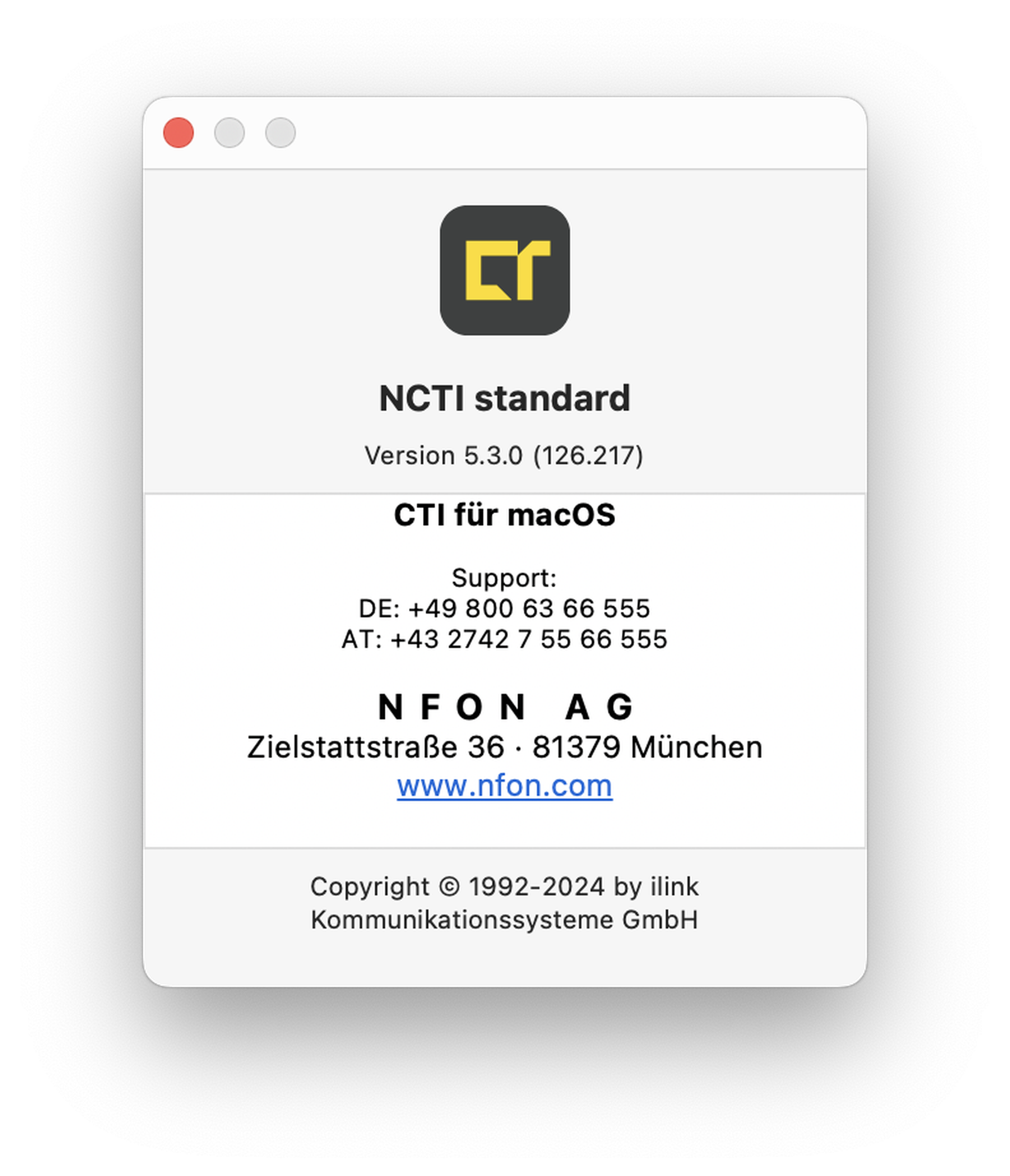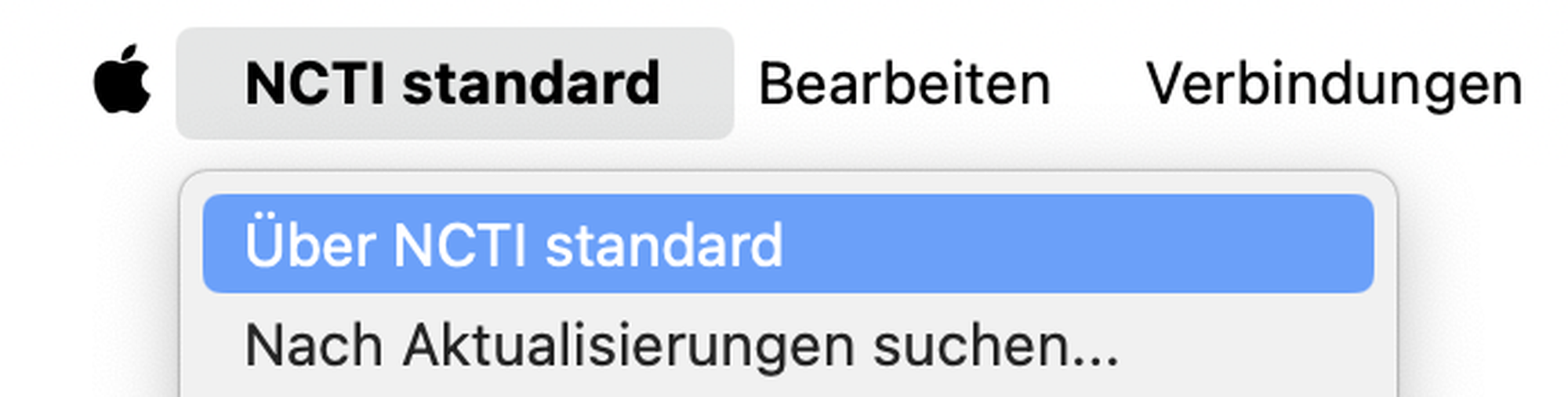 Die aktuelle Version Ihres Clients finden Sie, indem Sie in der oberen Leiste Ihres Bildschirms auf Über NCTI standard klicken.