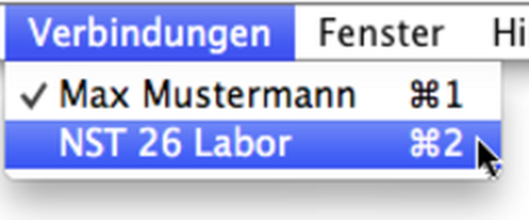 Per Shortcut wie beispielsweise cmd + 1, 2, etc. ist Ihnen auch über Ihre Tastatur möglich, zwischen Ihren Profilen zu wechseln. Eine Übersicht aller angelegten Profile und ihrer Tastenkombinationen sehen Sie unter "Verbindungen".