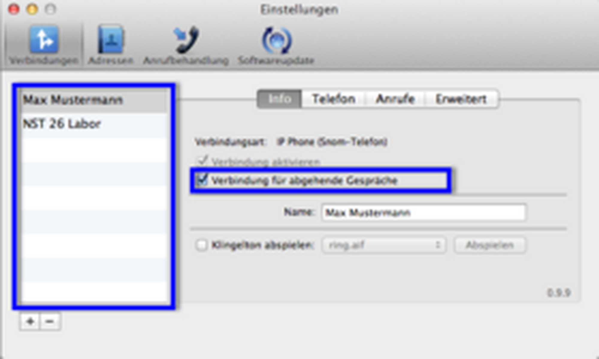 Dafür setzen Sie den Haken bei "Verbindung für abgehende Gespräche".