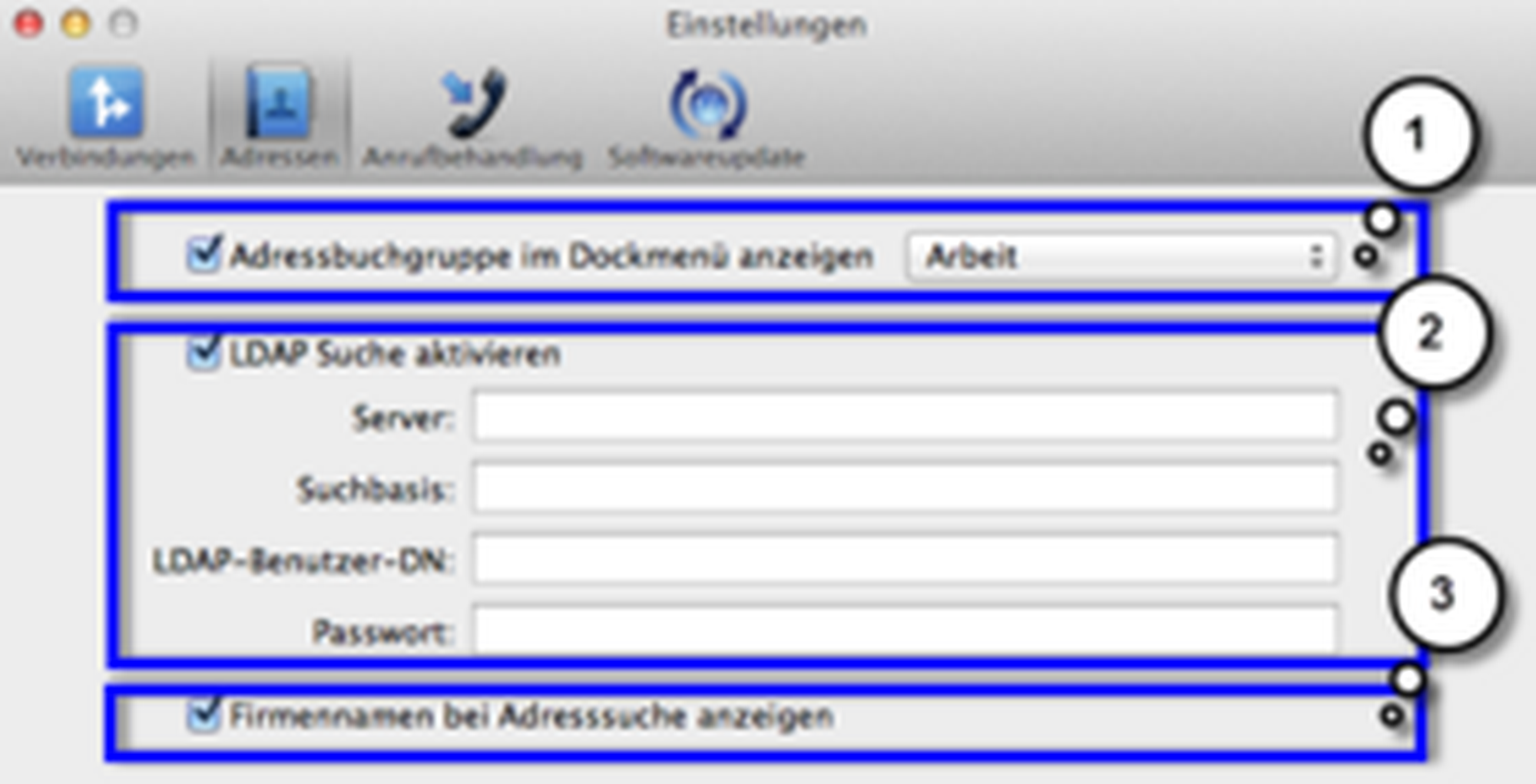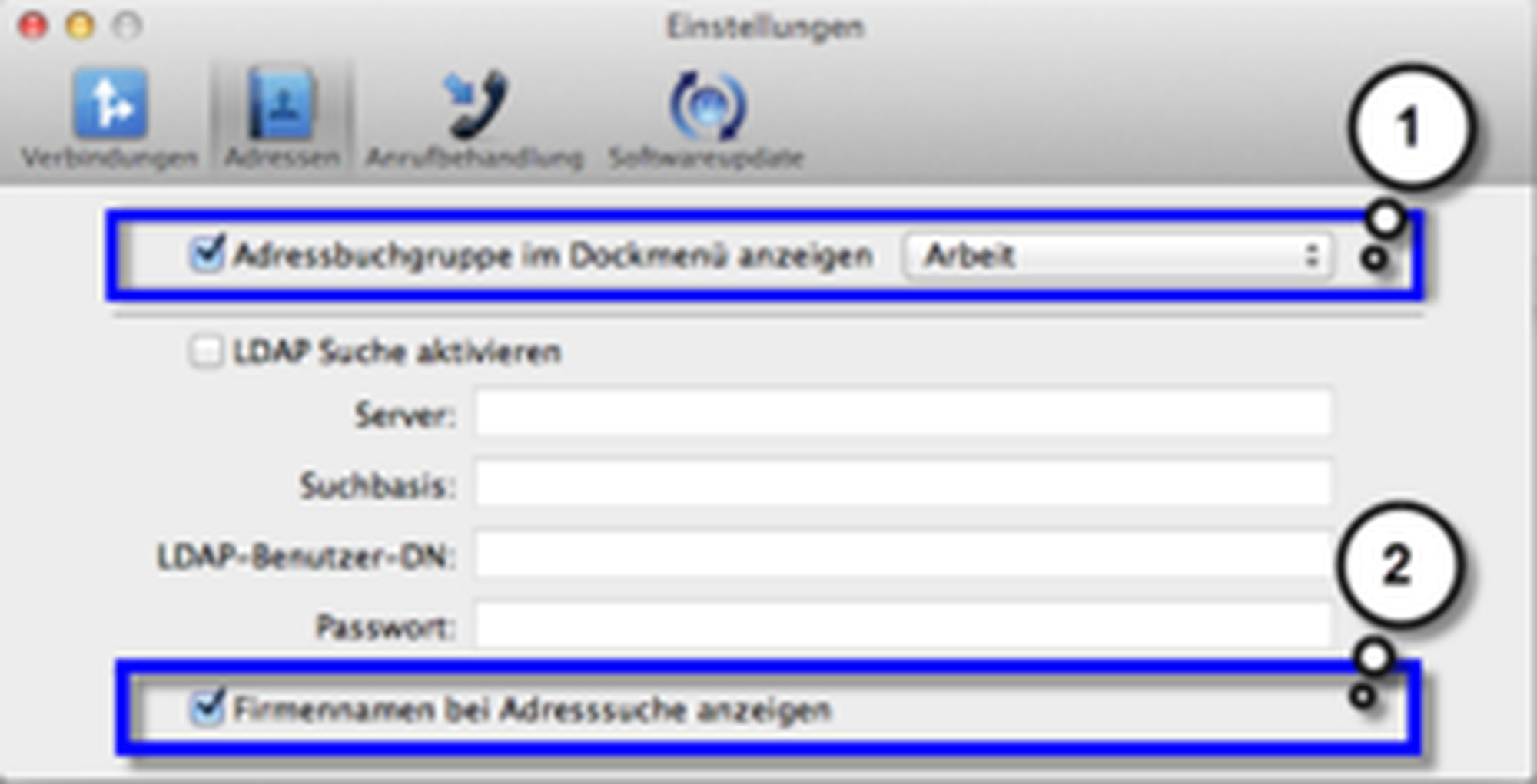 Oder Sie binden durch eine LDAP-Schnittstelle ein firmeninternes Adressbuch in Ihren Client ein.