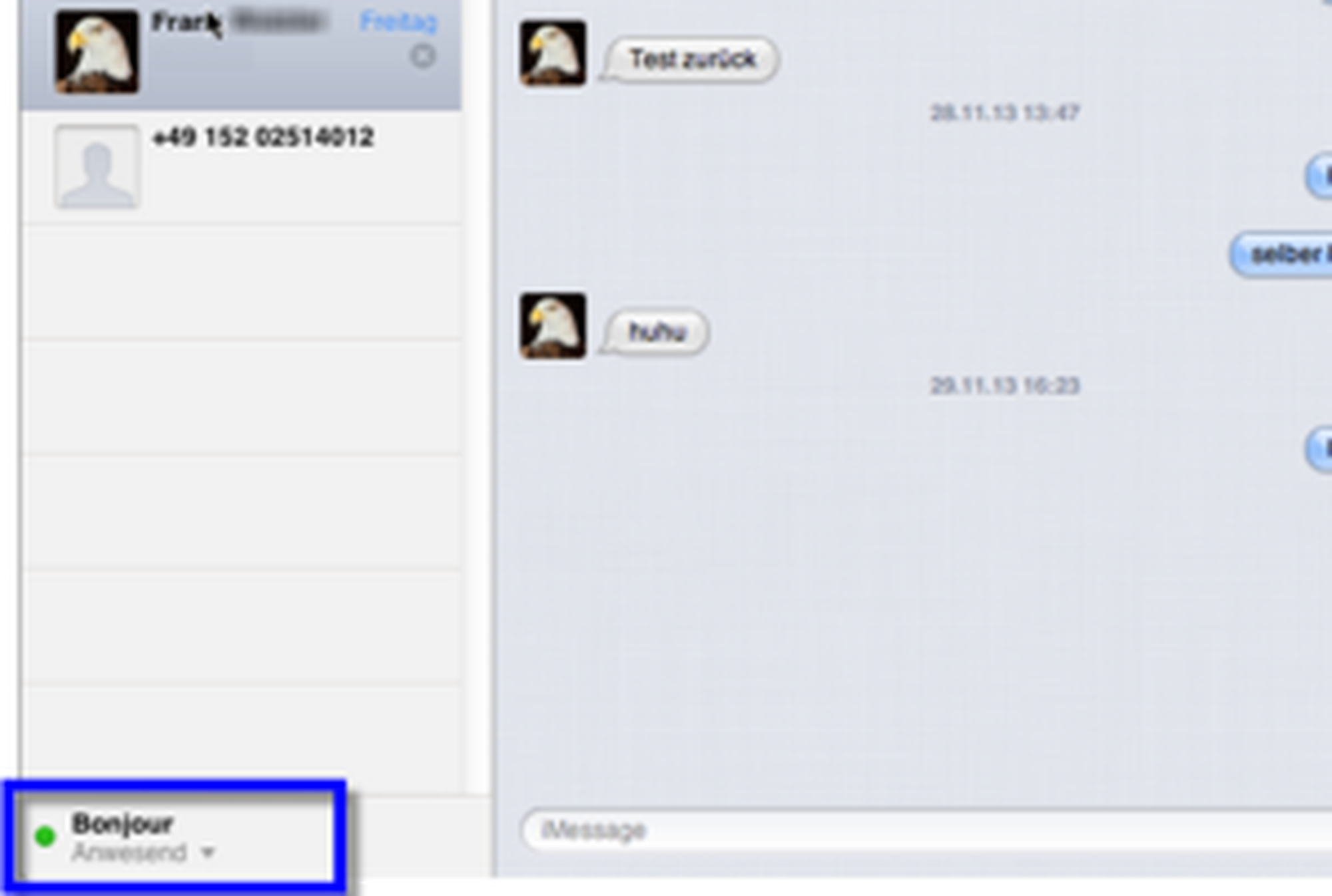 ⇒Sobald Sie die Anwendung "Messages" öffnen, sehen Sie unten links Ihren Status mithilfe der Bonjour-Funktion.