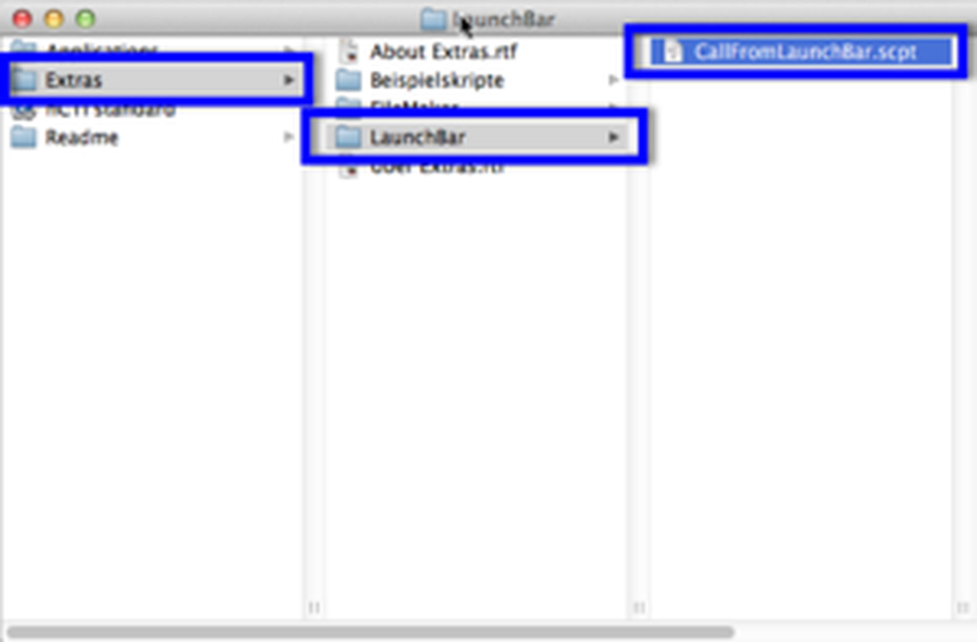 Über den Extras-Ordner erhalten Sie Zugriff auf das AppleScript "CallFromLaunchBar.scpt".