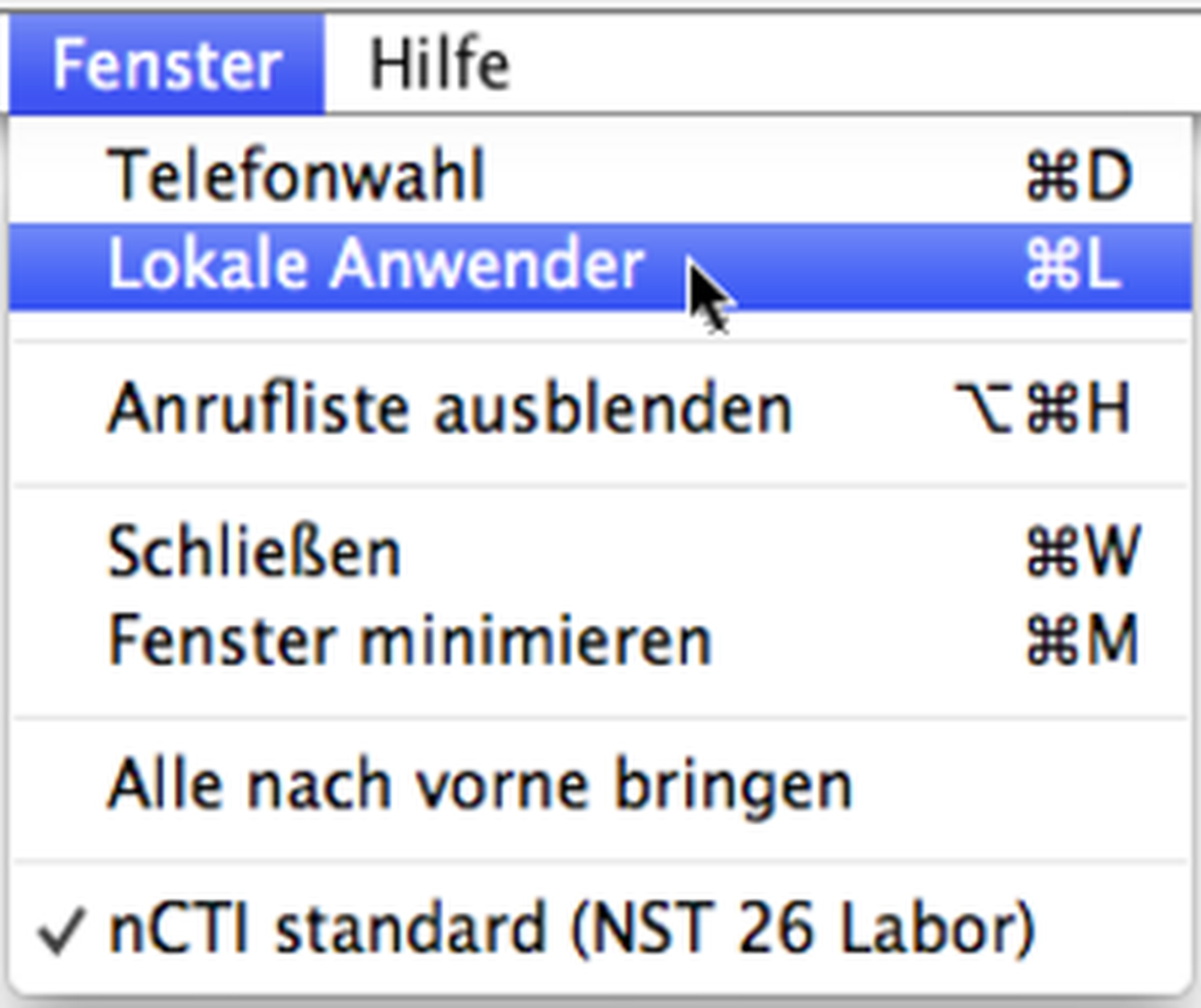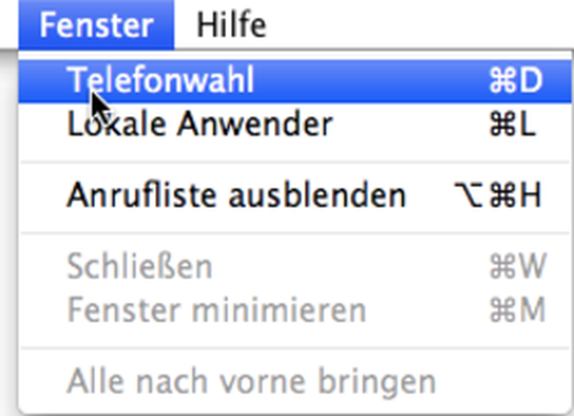 Bei jedem Start öffnet sich standardmäßig das Telefonfenster. Falls Sie dieses einmal geschlossen haben und zurückholen möchten, klicken Sie in der Menüleiste auf "Fenster" und anschließend auf "Telefonwahl".