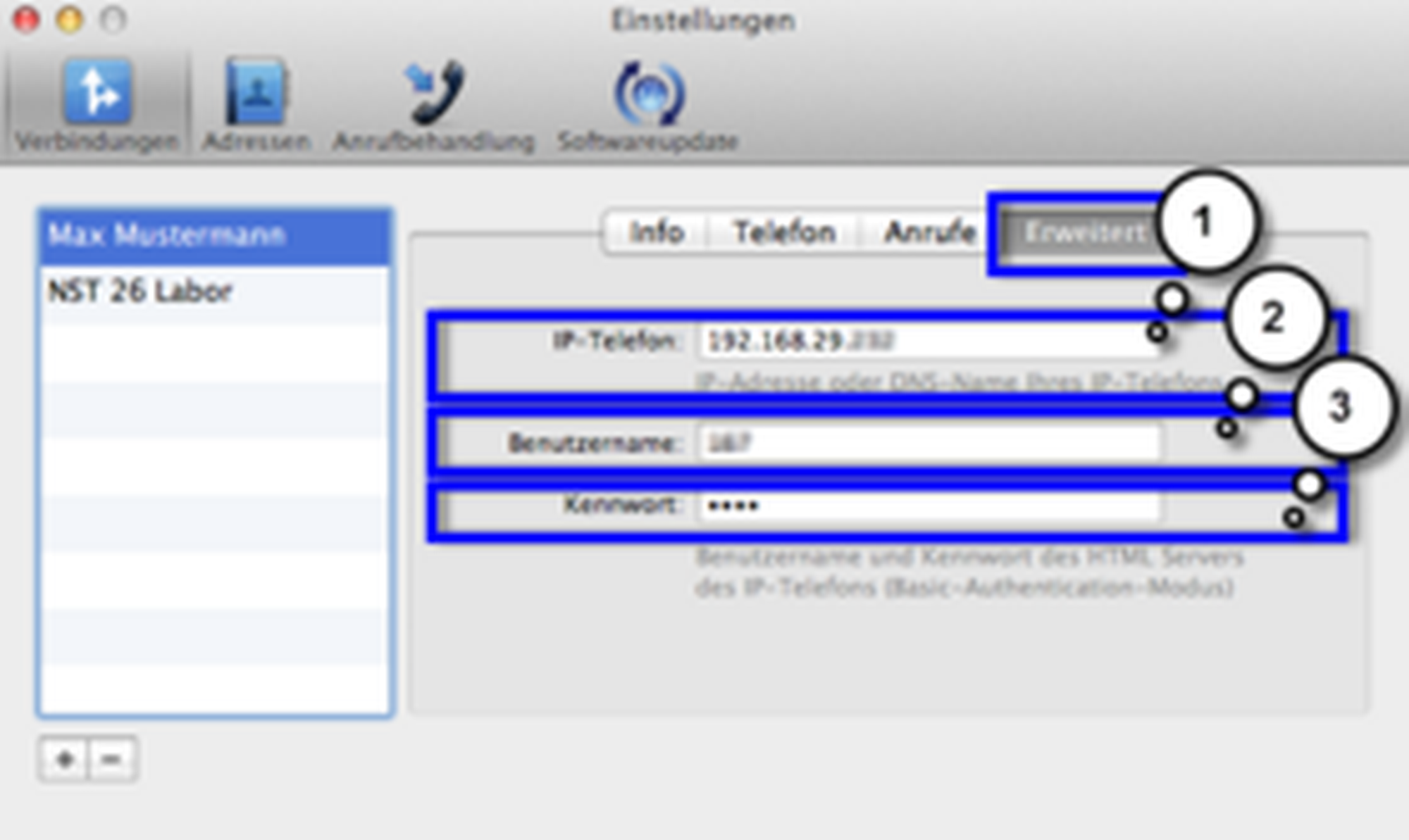 Unter dem Reiter "Erweitert" tragen Sie folgende Punkte ein: