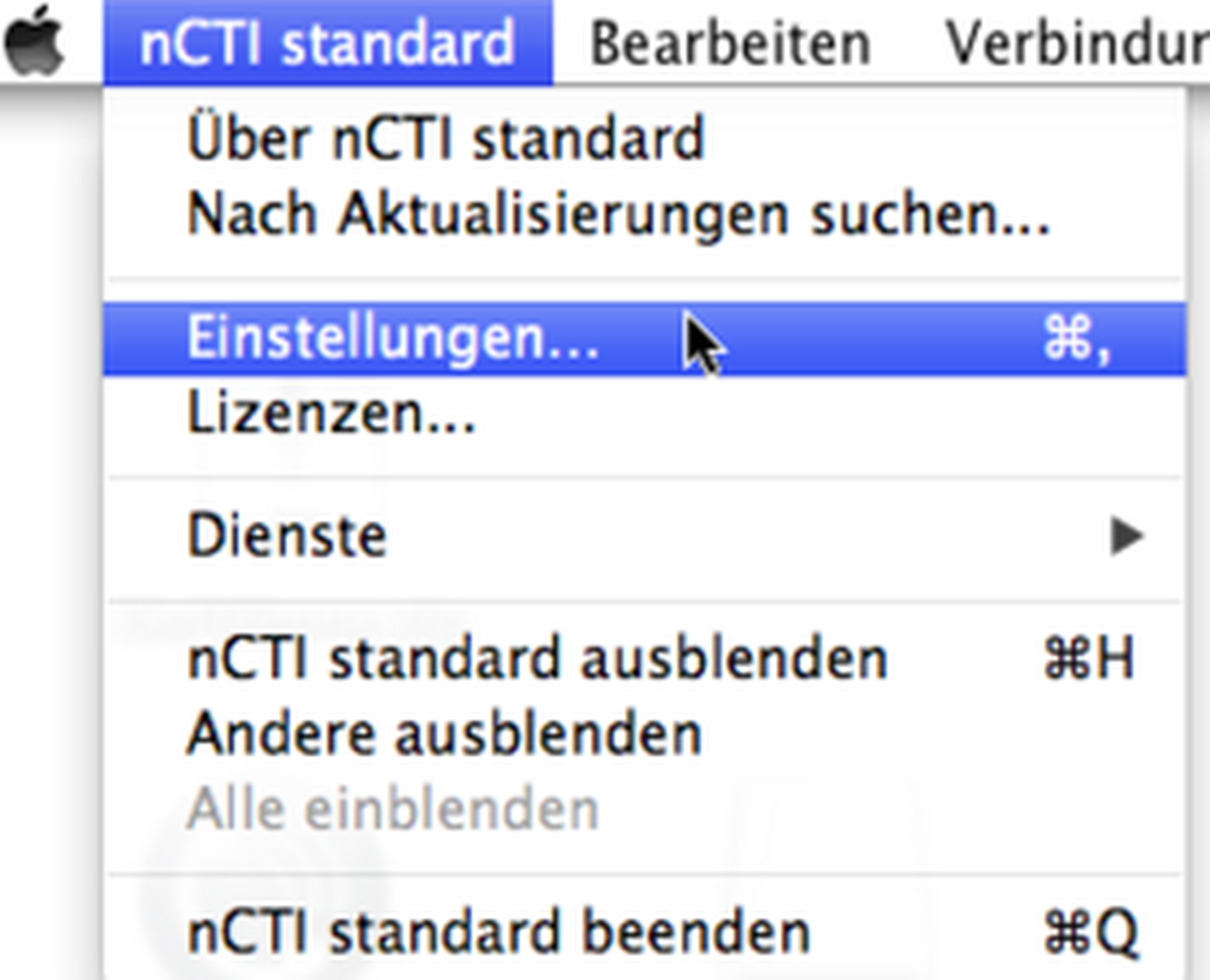 Hierfür klicken Sie das NCTI standard-Symbol im Dock an, um die Menüleiste für den Client zu aktivieren.