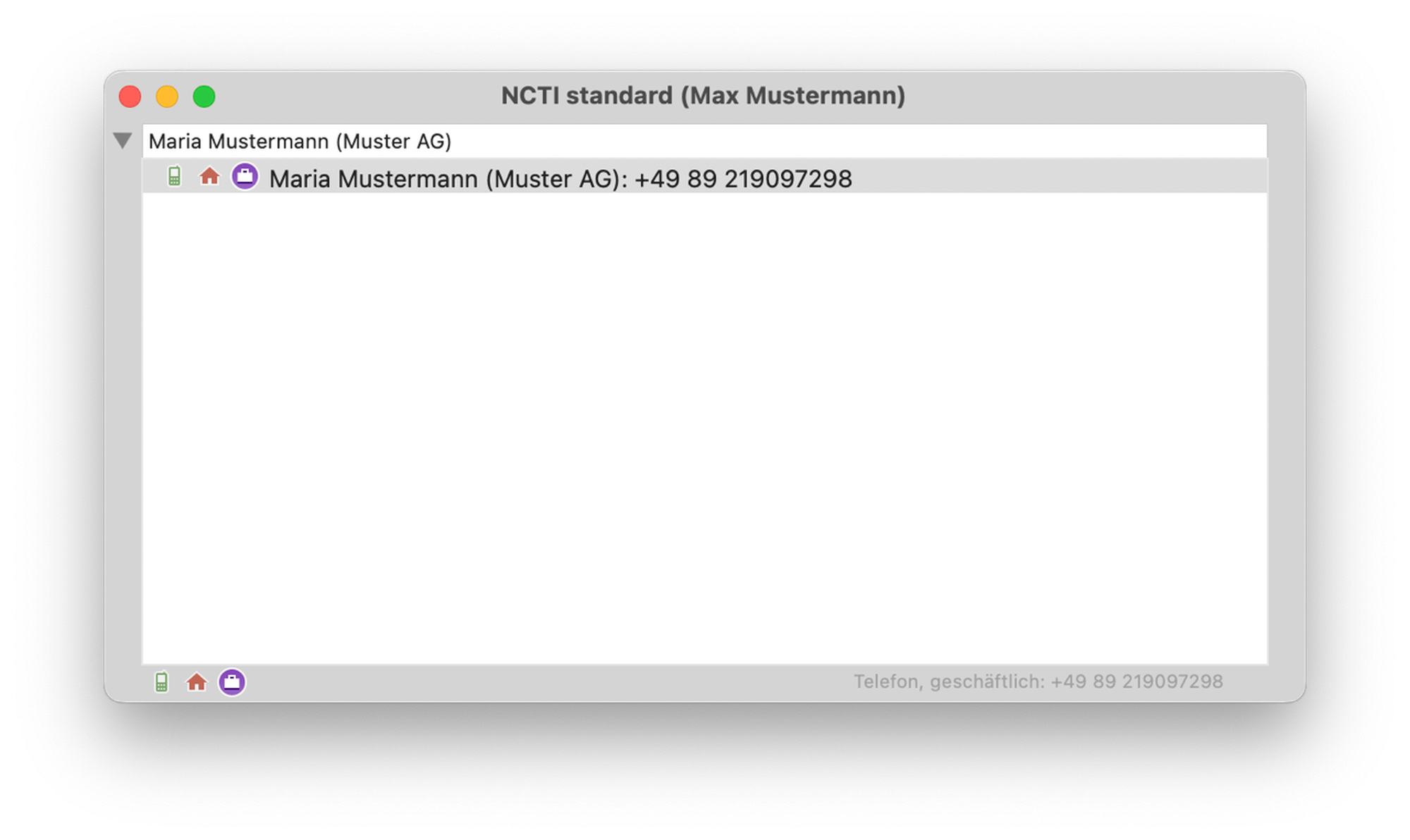Sobald Sie das Konfigurationsfenster schließen, haben Sie Ihr Telefon mit dem NCTI standard konfiguriert und können loslegen! Das NCTI standard Symbol wird Ihnen bei aktiver Verbindung zu Ihrem Telefon in Blau angezeigt.