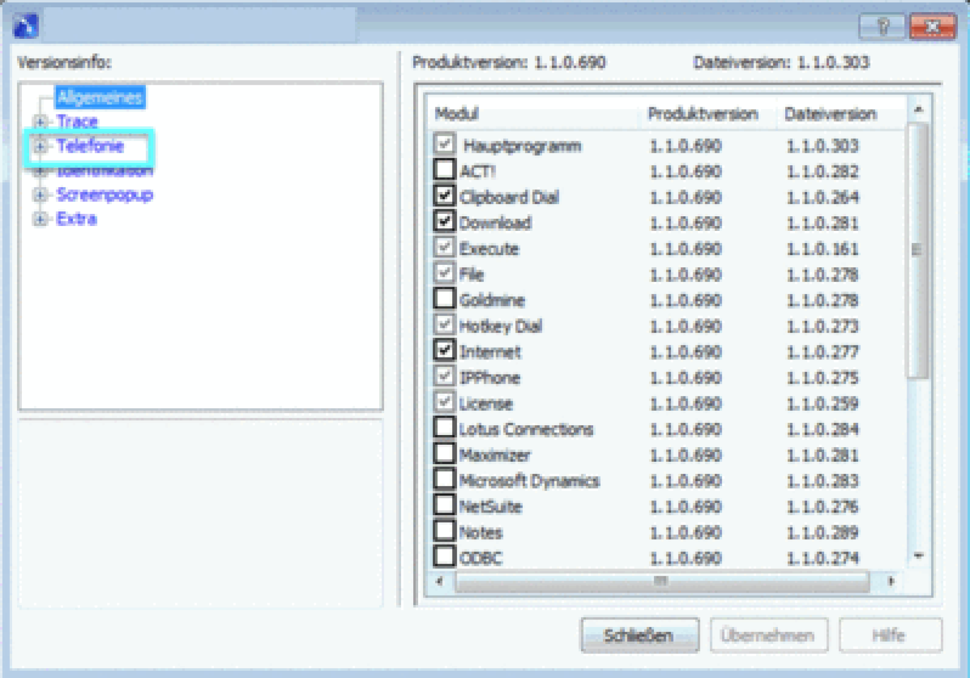 Standardmäßig ist TAPI nur für den NCTI standard CRM Client verfügbar.